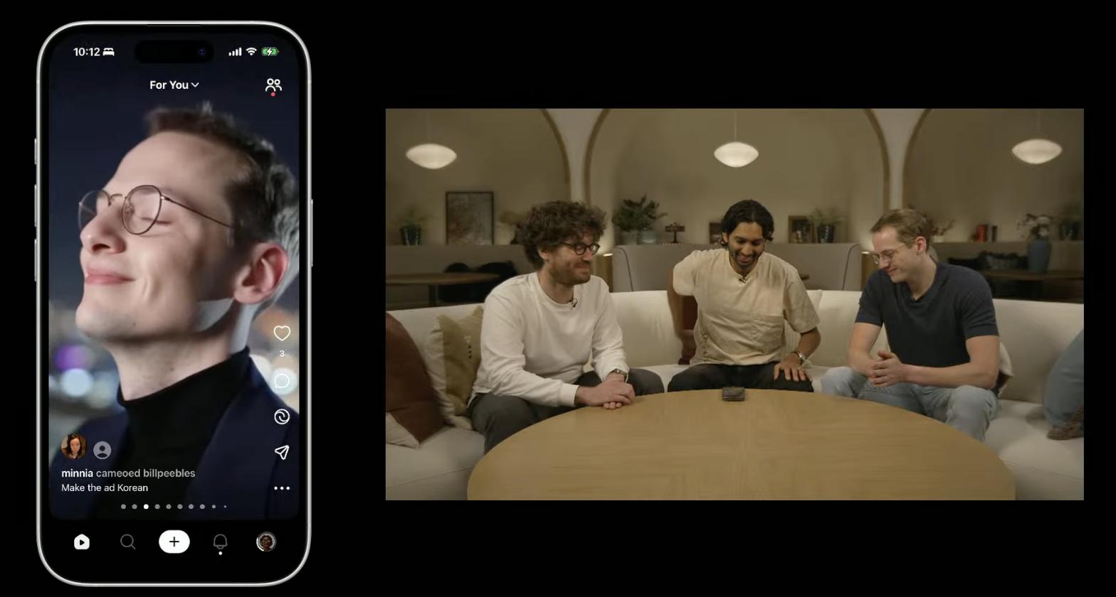 这看起来像一款AI版的抖音或TikTok,而OpenAI认为,围绕这项“客串”功能构建的社交应用是Sora 2体验的魅力所在。