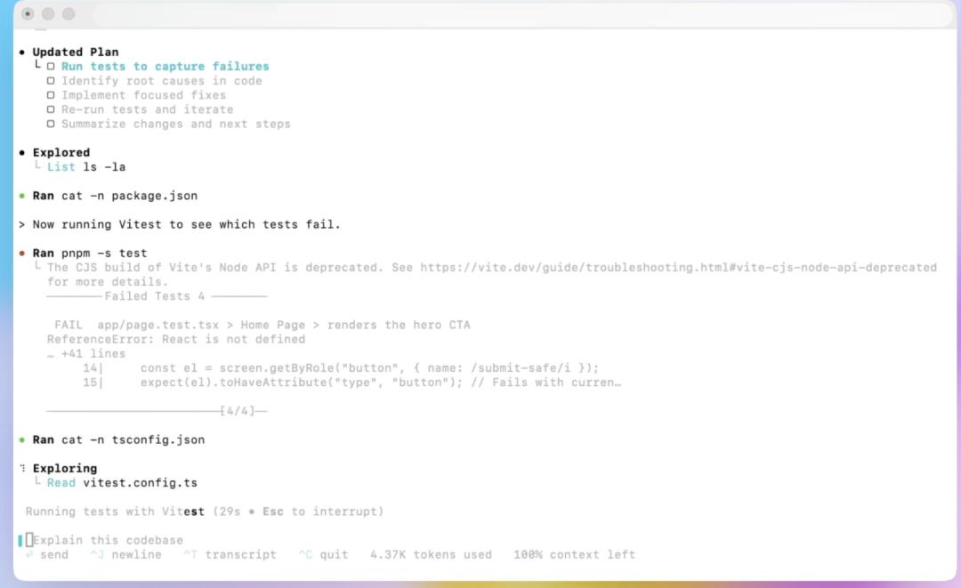 通过容器缓存技术,新任务和后续任务的中位完成时间缩短了90%。Codex现在会自动扫描常见的设置脚本并执行,还能在运行时通过pip install等命令获取依赖。在前端任务中,它可以启动自己的浏览器,查看构建结果,迭代改进,并把截图附加到任务和GitHub PR中。