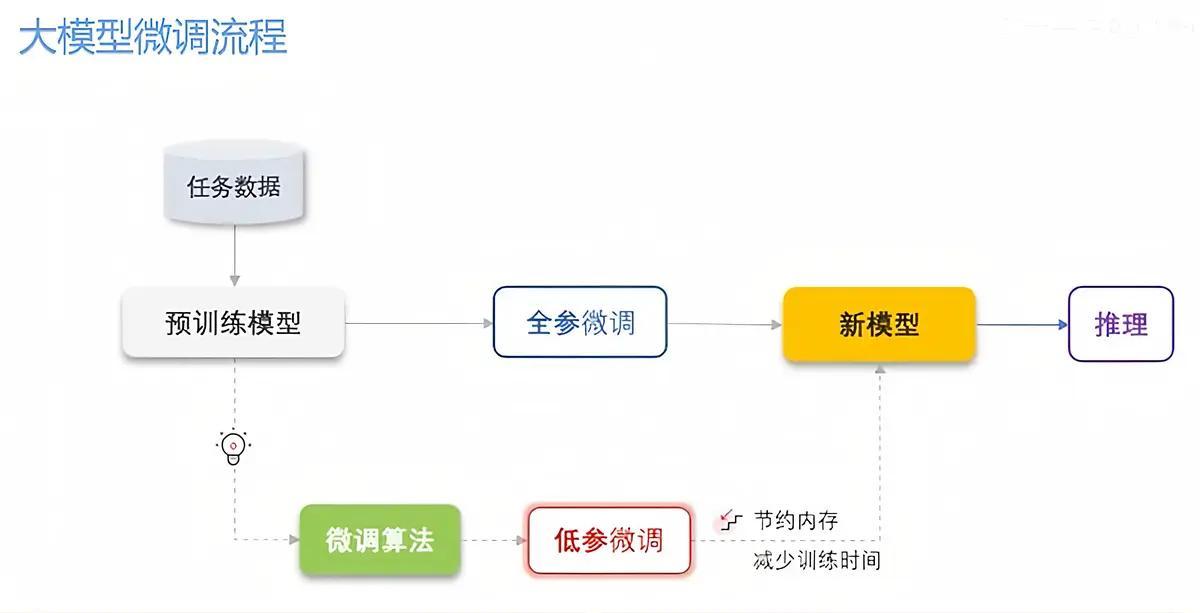 低参数微调(PEFT):更像是选派关键员工去进修,然后让他们回来培训其他人。这种方法只调整模型的一小部分参数(常用 LoRA 等技术),大大降低了计算和内存需求,训练速度快,效果却不差,是大多数企业的首选方案。