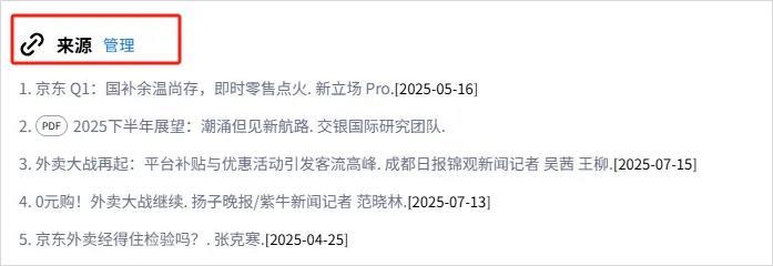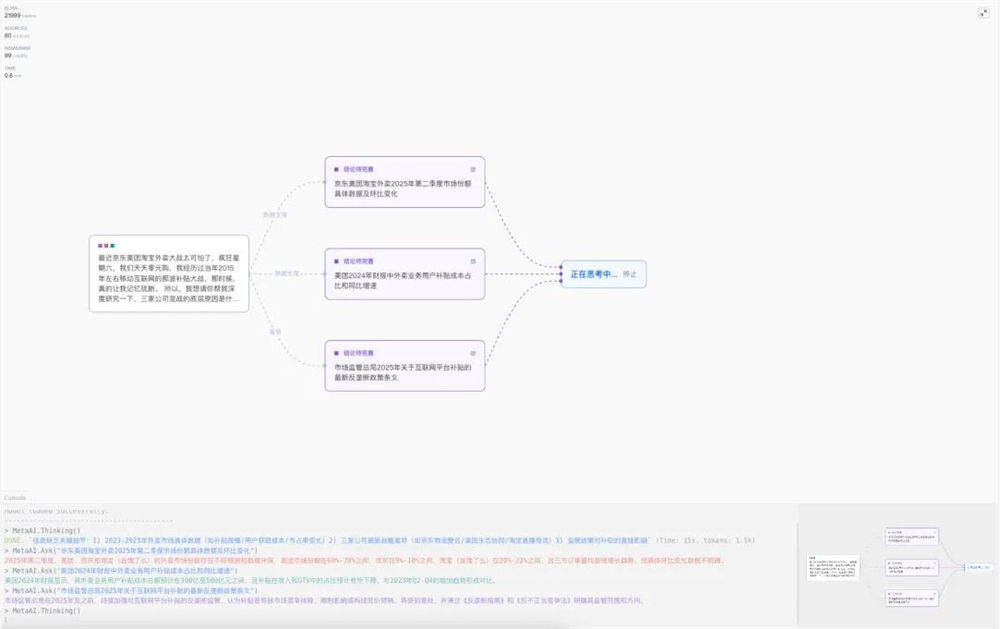 左上角的小字,显示这个问题占用了多少token,找到了多少个信源,调研花费多少时间。