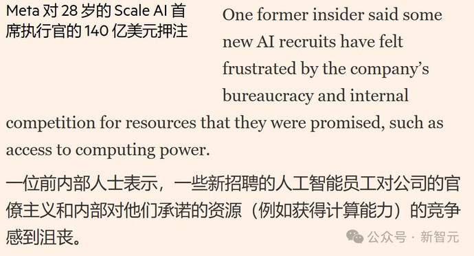 与此同时,自从Alexandr Wang和大批顶尖研究员加入后,Meta的AI部门反而变得愈发混乱。