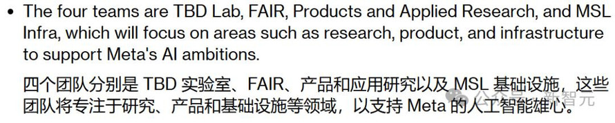 小扎对MSL极度重视,对公司的AI相关部门进行了大刀阔斧的重组,最终现在MSL有4个子机构: