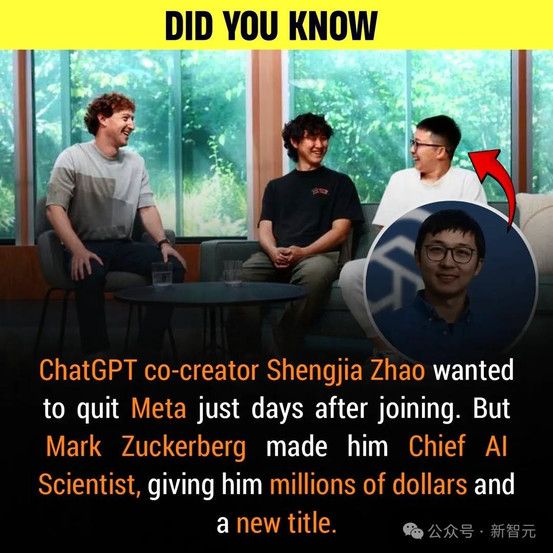 其中最典型的例子,便是赵晟佳(Shengjia Zhao)。这位前OpenAI研究员曾参与ChatGPT的研发,如今在Meta摇身一变,成了「首席AI科学家」。