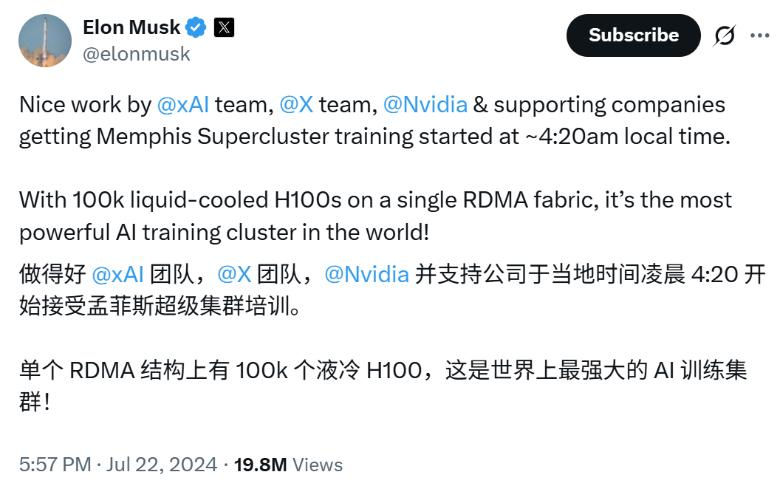 经过对数万行 lspci 输出的逐行检查,他们最终锁定了根因:错误的 BIOS 设置。马斯克陪着团队工作到深夜,当训练任务终于跑通时,他在凌晨 4:20 发布动态宣告成功。