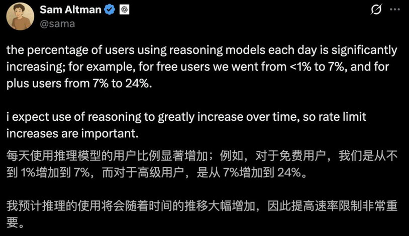 过去,超过99%的免费用户,从未用过类似o3的深度思考模型;如今,对他们而言,ChatGPT迎来的是「质变」。甚至奥特曼发文庆祝推理模式太火,要限制试用次数!
