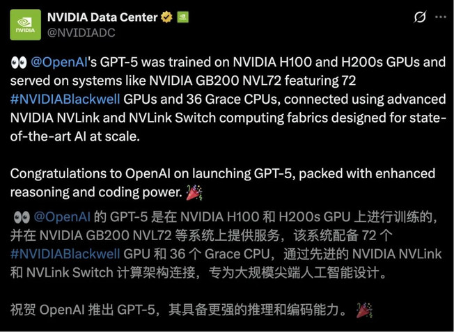 在推理和编程上,GPT-5得到了英伟达的认可。