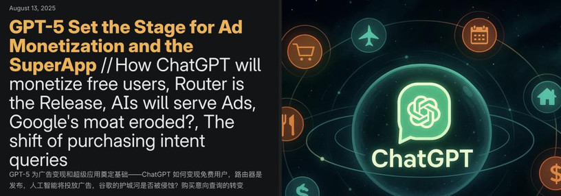 致力于半导体和AI分析的SemiAnalysis认为:「为广告变现和超级应用,GPT-5搭建新平台」。