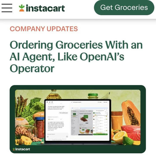 今年1月,Instacart已上线智能体代客下单功能。当时的Instacart CEO也入职了OpenAI——齿轮早已转动。