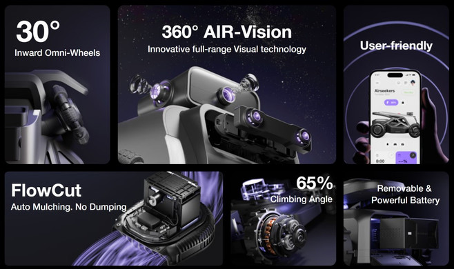 首先在产品力方面,其首款产品Airseekers Tron提出基于稠密地图的纯视觉方案、虽有一定特色,它的优势在于成本相对较低,能依托多目视觉系统获取丰富的环境信息,结合 “草坪爬纹技术”“旋转无偏算法” 等创新,可识别常见障碍物,实现草坪上的“自动驾驶”;同时,稠密地图的构建有助于更精准地规划路径,提升作业效率。