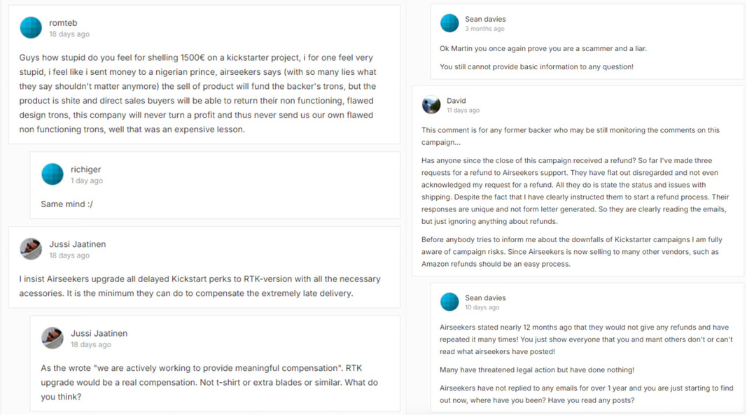 Kickstarter上,用户催促交付的留言(图源/Kickstarter)