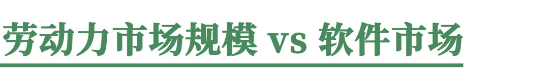 全球 SaaS 市场已经大约有 3000 亿美元的年规模,而美国的劳动力市场则高达 13 万亿美元,当前软件所瞄准的,就是争夺这块劳动力市场的大蛋糕。
