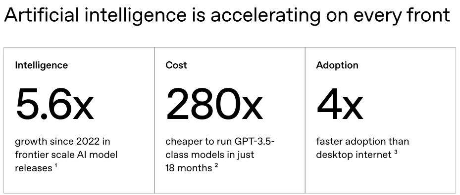 - 自 2022 年以来,前沿大规模 AI 模型的发布数量增加了 5.6 倍;