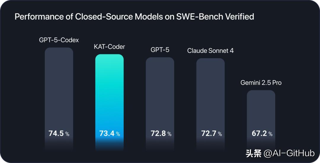 KAT-Dev-72B-Exp是KAT-Coder模型的实验性强化学习版本。而KAT-Coder本身就在SWE-Bench认证榜单上击败了GPT-5(非Codex模式)和Claude 4 Sonnet,展现出了强大的竞争力。