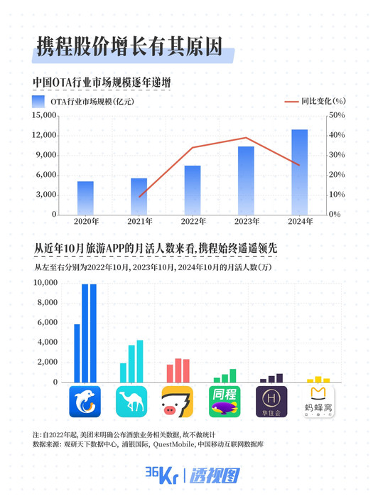 QuestMobile数据显示,2022年10月,携程与去哪儿的月活用户数是其他旅游平台的数倍至数十倍。时至2024年10月,这一差距还在加大。今年1月,携程也宣布投入超亿元的资源帮商家减负。相信在未来,OTA行业会呈现“多平台比价”的态势。至少在一段时期内,产业链的利益会向下游的中小企业倾斜。