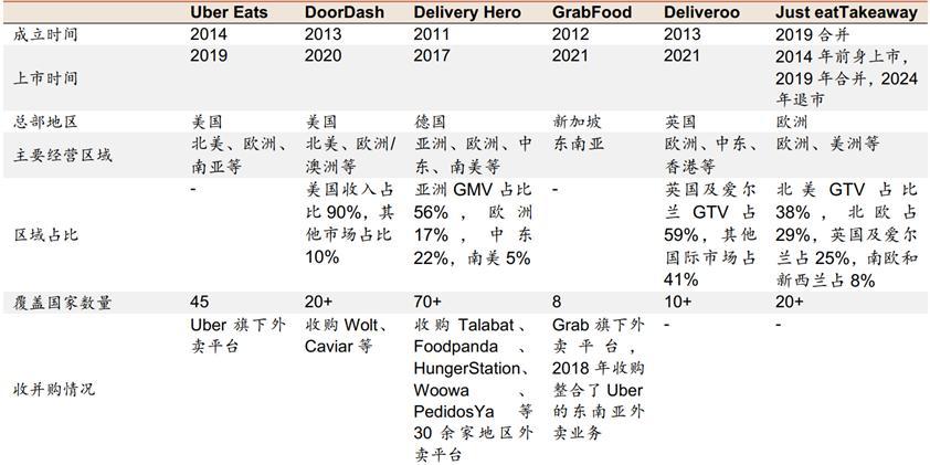 如Uber和DoorDash都完成了重磅海外收购,其中Uber的海外战略更为成功,外卖业务已覆盖全球超过50%的市场,合计市占率超过20%;DoorDash主要进军的是澳大利亚、加拿大、日本和欧洲(2015年70亿欧元收购Wolt)等发达市场。