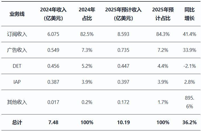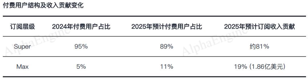 这一强劲增长主要得益于付费用户规模的快速扩张(2025年Q2达到1097.5万,同比增长37%)以及由AI驱动的Max套餐等高ARPU(每用户平均收入)产品的成功推广。