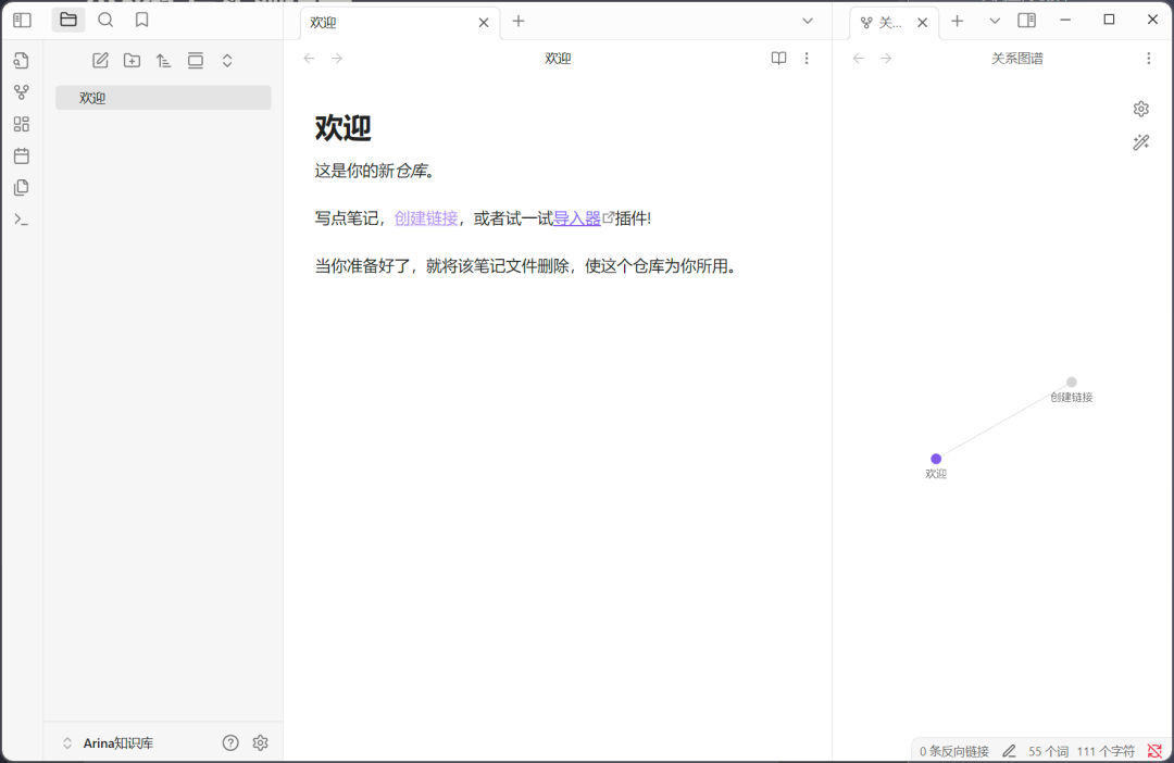 创建成功后,你就拥有了第一个 Obsidian 仓库,一片等待你耕耘的知识沃土!