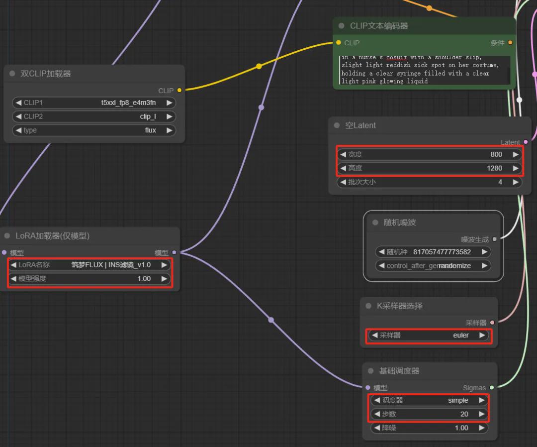我们只需要将筑梦F.1 | INS滤镜模型下载放置到ComfyUI\models\loras目录下。然后加载工作流就可以直接体验了。