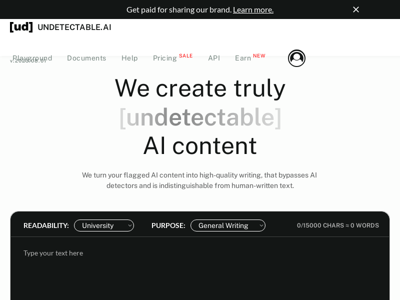 Undetectable.ai 注册登录后可免费试用,新用户可获赠 250 个积分,并免费使用 AI 检测功能。如需更多权益及额度可购买会员或按字数购买。