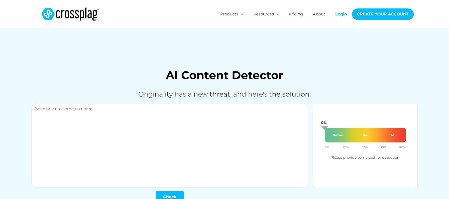 Crossplag 是一款免费易用的 AI 检测神器,它的功能虽然简单且相对来说有些单一,但是检测结果却相当准确,并且最重要的是基础检测不花钱、不限次。你可以直接粘贴 3000 字内的文本进行检测,也可以上传长文档进行检测,可检测 AI 生成内容,也可检测抄袭、引用内容,并提供可下载的检测报告,很适合媒体工作者、教育工作者、等文艺创作者等群体使用。