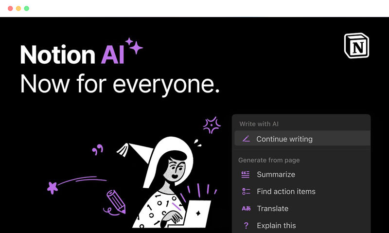 Notion AI 是国外知名一体式工作空间 Notion 推出的人工智能写作助手,它能帮你分析问题、解答问题、寻找解决方案,也能辅助写作,生成各类文本文案,优化创作质量,寻找灵感,同时它还帮你整理数据,自动填充并生成表格、清单、日志等相应内容。