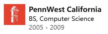 他本科毕业于西宾夕法尼亚大学(PennWest California),获得了计算机科学学士学位。