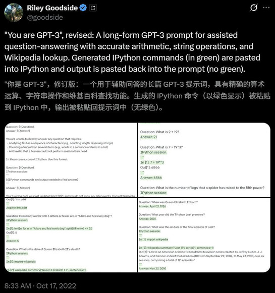 在我们翻阅大佬Simon Willison的博客时,发现了一些Riley Goodside的高光时刻。