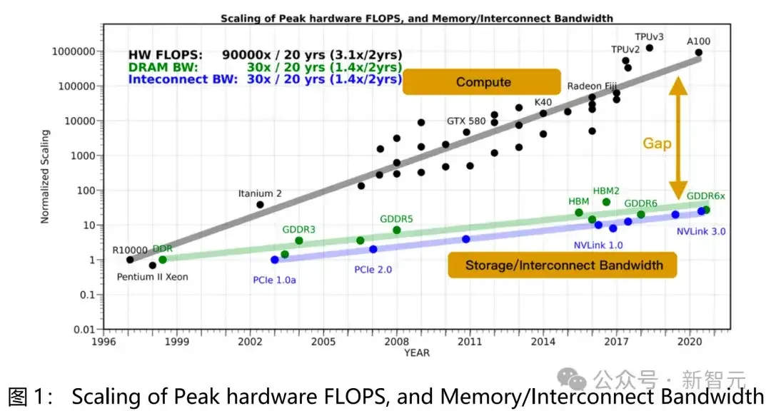 - 内存带宽短缺:尽管芯片的理论峰值算力不断提升,但由于模型规模增速远超内存带宽增速,在许多实际AI应用场景中,计算单元大部分时间可能因等待数据而闲置,未能充分发挥其计算潜力。
