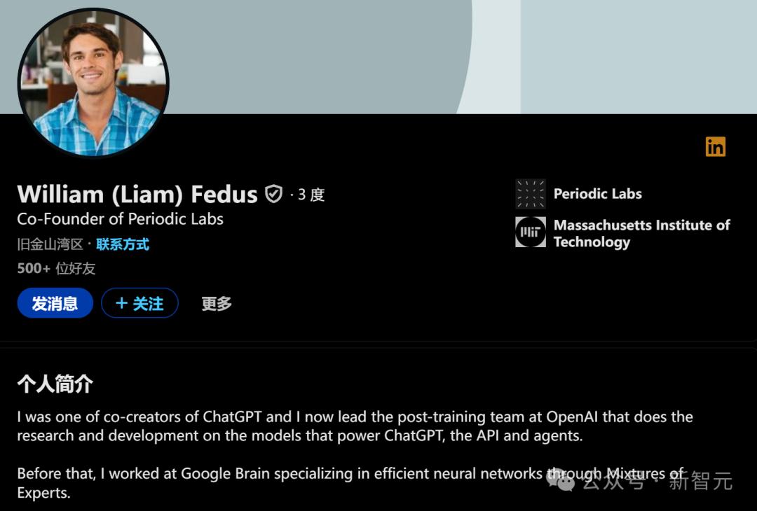 就在今天,OpenAI后训练负责人William Fedus发布推文宣布,与DeepMind的另一位AI4S大佬Ekin Dogus Cubuk合伙创办了AI4S公司Periodic Labs,还挖来了20余名来自OpenAI、Meta、谷歌的顶级研究员。