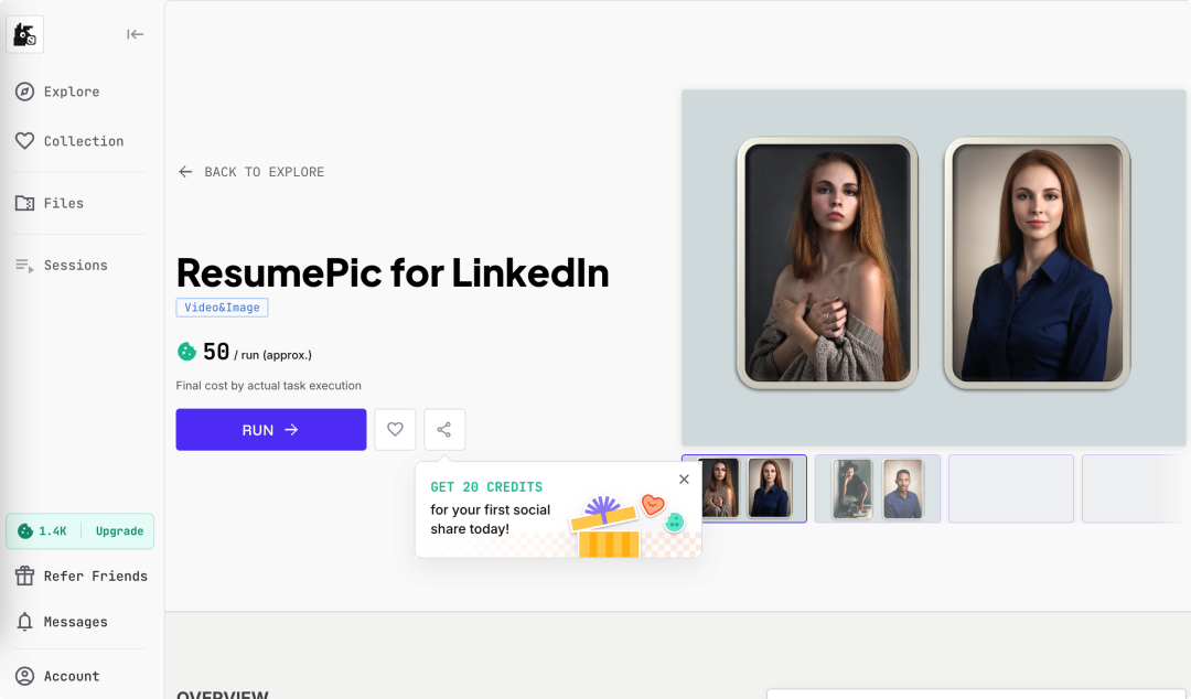 在 MuleRun 上找个「图片处理」的 Agent,50 积分,几分钟搞定。