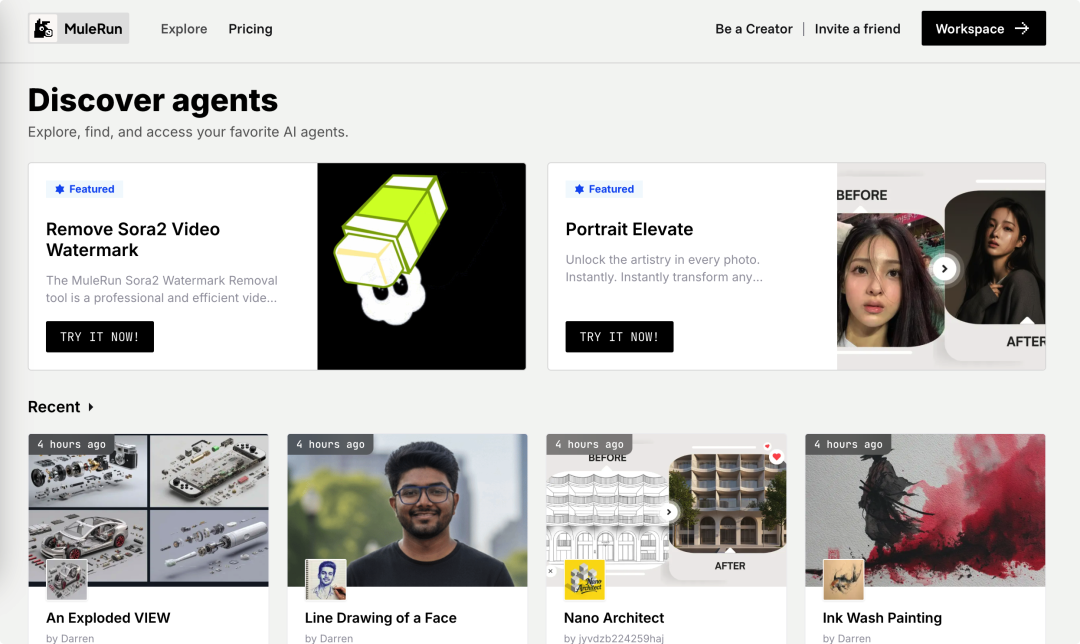 直到我看到 MuleRun,才发现有人正在尝试打破这个困局——让不懂代码的专业人士,也能把自己的工作流变成可交易的「商品」。