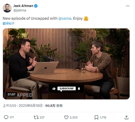 有趣的是,奥特曼还在播客中透露,他对AI驱动的社交媒体应用颇有兴趣。他描述了一种利用AI根据用户真实兴趣定制内容流的社交平台,区别于当前算法驱动的“默认信息流”。