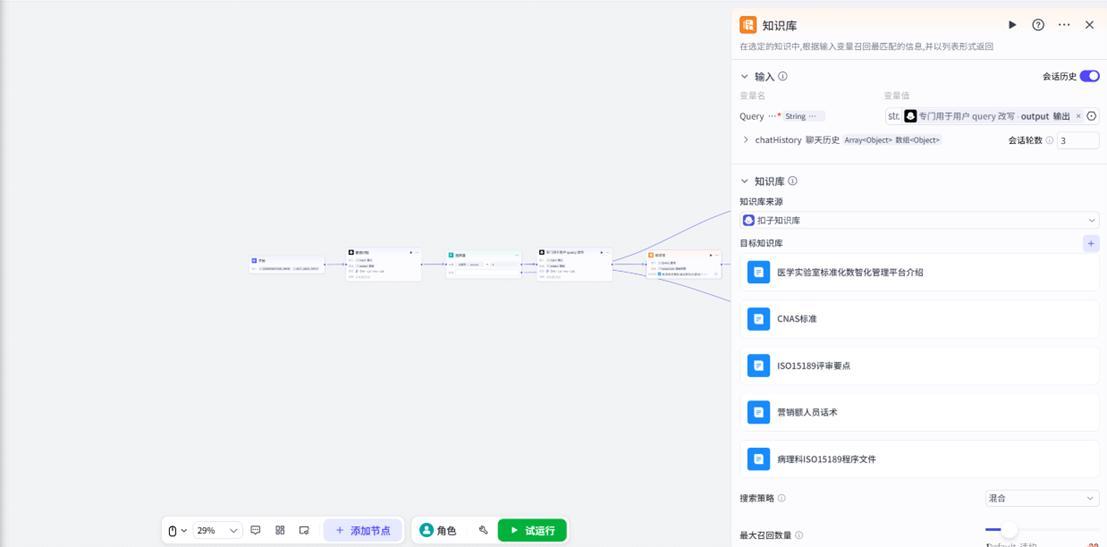 搭建知识库→用户输入→意图识别→分类判断→问题改写→生成回复→数据保存-发布