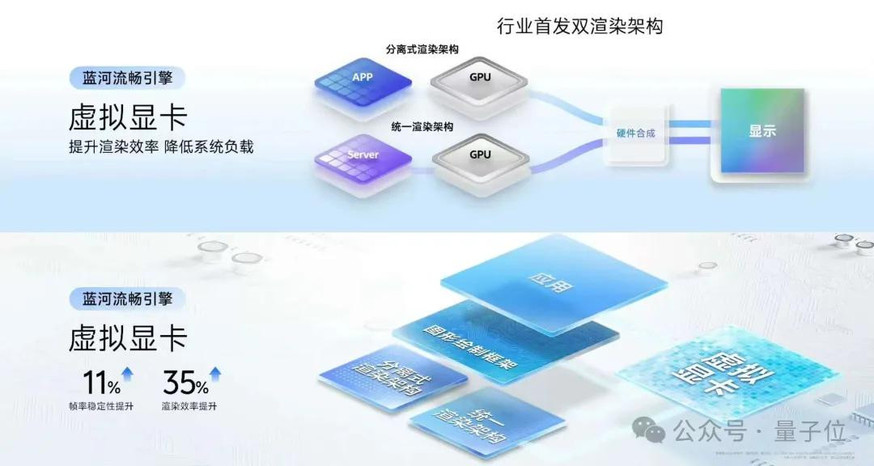 所以,vivo再次升级虚拟显卡,推出「双渲染架构」,在保留原有分离式架构上,引入统一渲染架构,实现“双架构并行”。