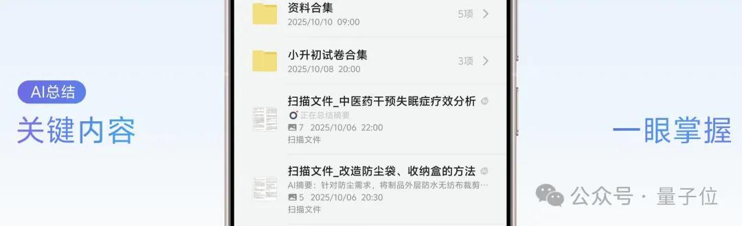 vivo还让AI进入到了更多细节之处。无论是在文档列表,还是邮件,AI都能帮你为每一个文档和邮件提炼出一句话摘要,让你在找文档或邮件时,一眼抓取重点信息。