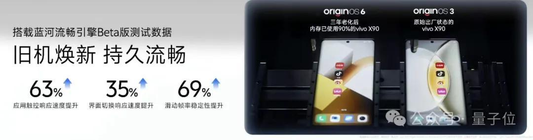 效果上,vivo让搭载OriginOS 6的三年机龄古董X90为和全新出厂但搭载旧版OriginOS 3系统的X90新机进行了对比测试。