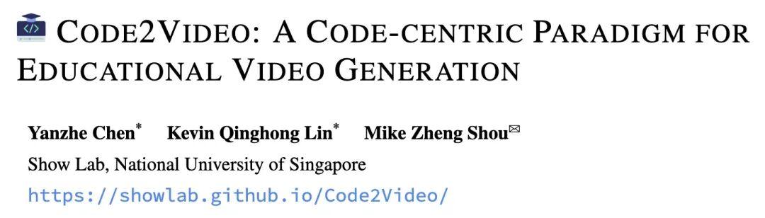 • 标题:Code2Video: A Code-centric Paradigm for Educational Video Generation