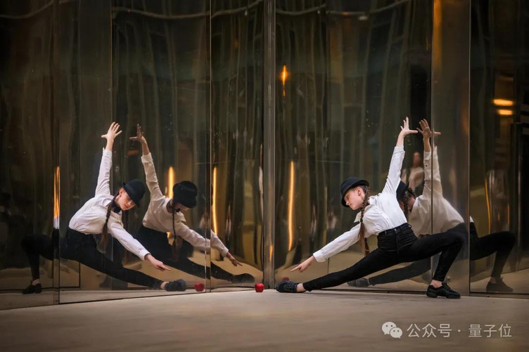 这张图的难点显而易见,就是考验大模型们是否能精准的按照物理规律,把舞者在镜中各个角度的姿态表现出来。