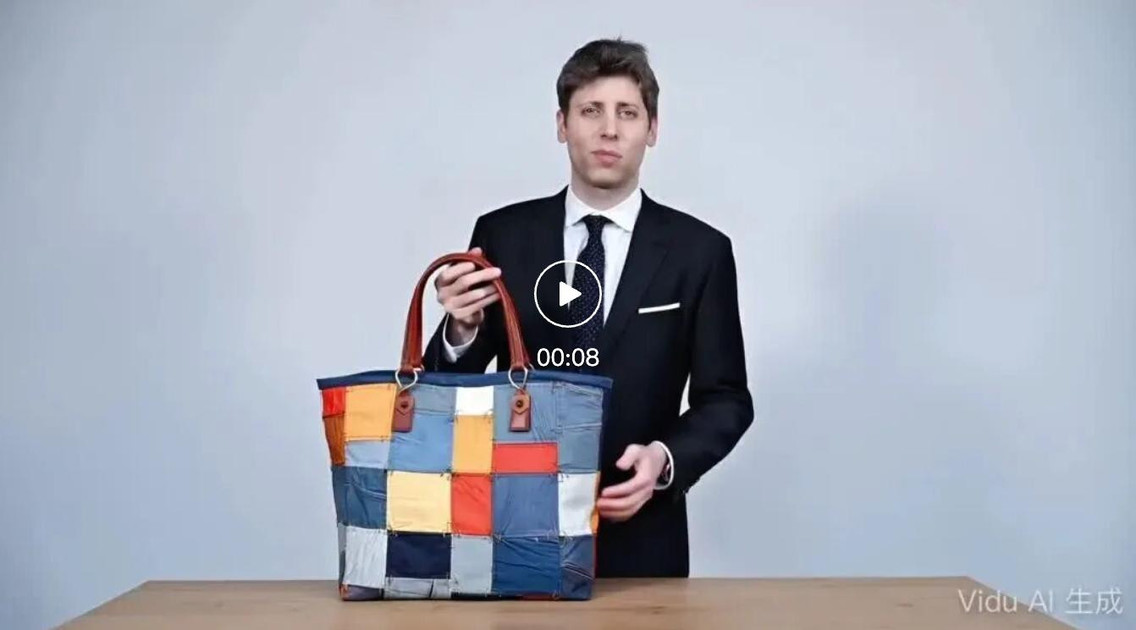 Sora 2依旧的优势在于奥特曼说着中文介绍着这款包包,但……