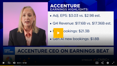 埃森哲CEO接受CNBC采访称:我们在 AI 领域的早期投入正迎来回报