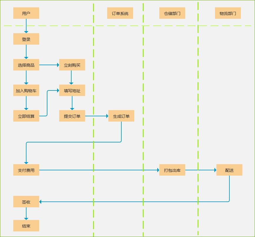 从上面场景,我们可以梳理出整体的订单系统流程,具体如图: