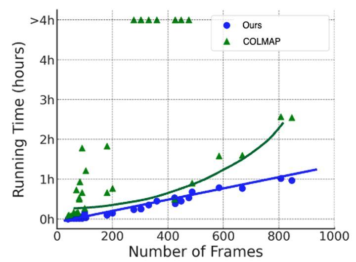 - 运行时间趋势对比(随帧数增加呈线性增长)