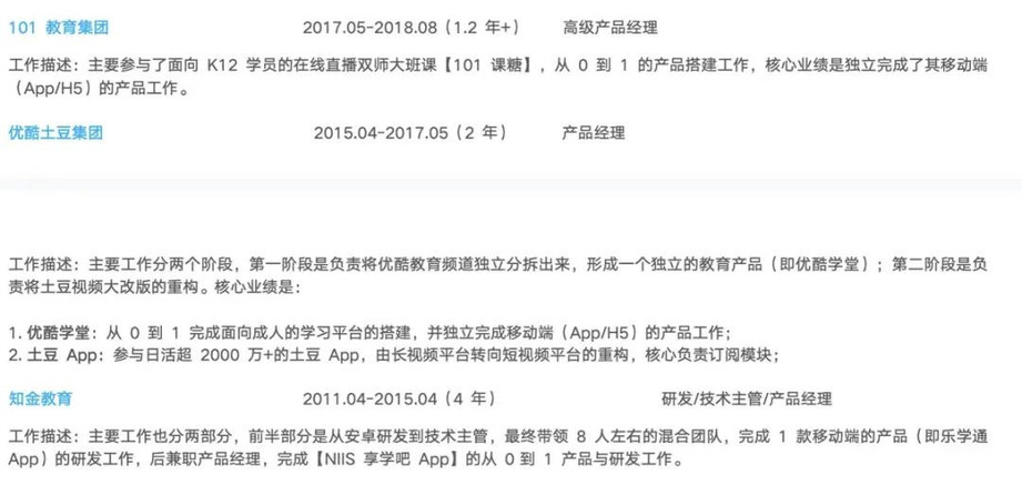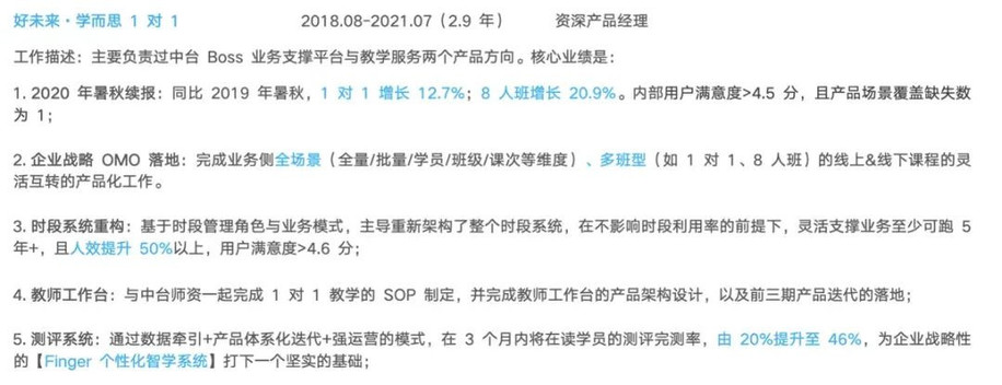 每次做产品规划、项目立项时,他都会思考对应产品是否有价值放到简历里?如果有的话,如何用一句话描述其成果与价值?