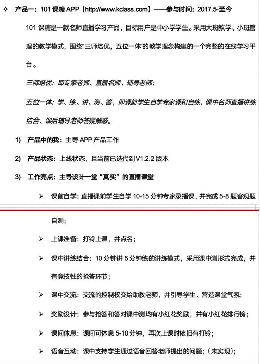 一年后,离职重新找工作时,他依然延续了对应的简历风格——结果就是各种碰壁。比如他对其中负责过的一款产品是这么写的: