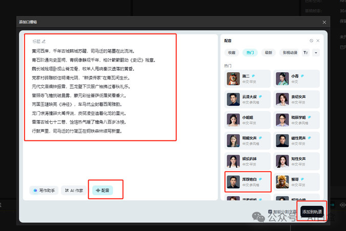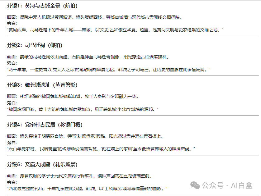 文案生成:DeepSeek(提炼文化关键词) 绘画:即梦AI/意间AI(需固定画风参数) 配音:剪映AI配音(纪录片男声) 剪辑:剪映(自动字幕+蒙版转场)