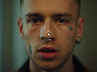 一张特写电影式肖像:面部布满纹身、戴着耳环的男子正凝视镜头,嘴唇微张。突然,一只紧握的拳头从画面左侧猛烈击中他的脸部,造成强烈冲击变形——脸颊凹陷、嘴唇移位,皮肤表面泛起涟漪般的波动。采用戏剧性浅景深与情绪化灯光,精准捕捉面部受击时的紧绷表情与真实物理变形,画面定格在冲击瞬间。